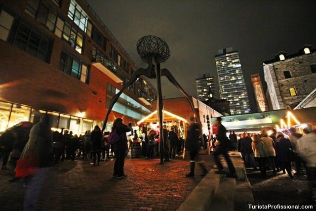 It's located in the former Gooderham & Worts distillery of Victorian-inspired industrial buildings with exposed brickwork and cobbled streets. You'll find art studios, cafes, retail shops, public art, art galleries and even a theatre.